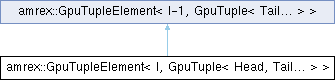 Inheritance diagram for amrex::GpuTupleElement< I, GpuTuple< Head, Tail... > >: