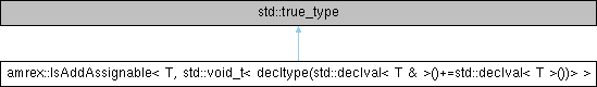 Inheritance diagram for amrex::IsAddAssignable< T, std::void_t< decltype(std::declval< T & >()+=std::declval< T >())> >:
