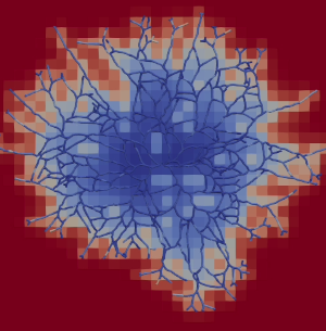 The simulation here shows the bubble dynamics and was performed using Flash-X ( https://www.sciencedirect.com/science/article/pii/S2352711022001030) + AMReX. Integration with AMReX has significantly improved the performance of incompressible multiphase problems within Flash-X compared to its predecessor FLASH ( https://www.sciencedirect.com/science/article/pii/S030193221930165X). In our recent article we talk about the performance improvements in the Poisson solver that has made this possible ( https://arxiv.org/abs/2306.10174).